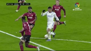 不过皇马打破僵局的进球来得有些奇怪。第42分钟,卡塞米罗中路领球突入禁区,被对方中后卫阿尔德雷特抢先卡位后突然摔倒,主裁判埃尔南德斯·埃尔南德斯果断判罚点球。场外裁判专家佩雷斯·布鲁尔认为:“并没有足够判罚点球的接触动作,卡塞米罗是自行倒下的。”本泽马将点球稳稳射入球门上角,并由此升入一个全新高度:皇马300球俱乐部。迪斯蒂法诺308球的纪录就在眼前。