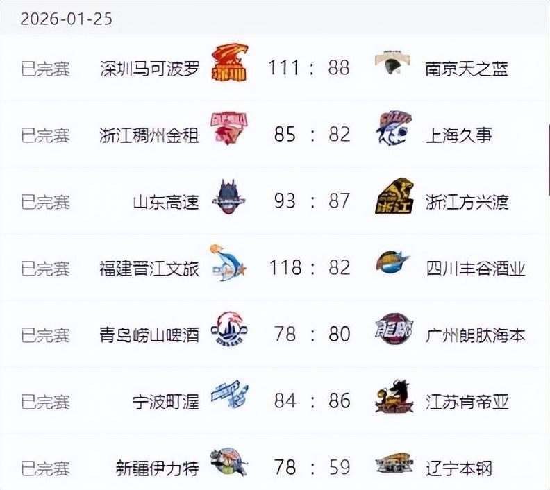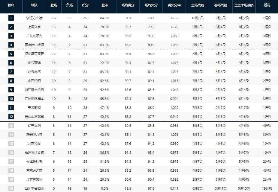 CBA第19轮的比赛已经结束,这轮比赛打得非常激烈,四强里的广厦男篮、上海男篮和青岛男篮都输掉了比赛,只有广东男篮力克了山西男篮。其他的比赛中,北京男篮输给了同城对手北控男篮,曾经的三连冠强队辽宁男篮更是不敌新疆男篮遭遇四连败,沦为了一支弱旅。先来看一下这轮比赛的具体对阵情况,然后看一下积分榜排名的变化。